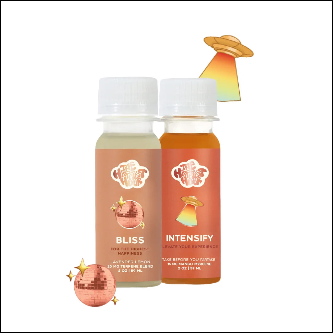 They're tiny but mighty plant-based wellness shots made with aromatic compounds called terpenes—found naturally in fruits, herbs, and spices. Each blend is designed to help you feel a certain way: calm, energized, sleepy, blissed-out, or more. No CBD. No THC. Just clean, targeted support for your nervous system.