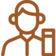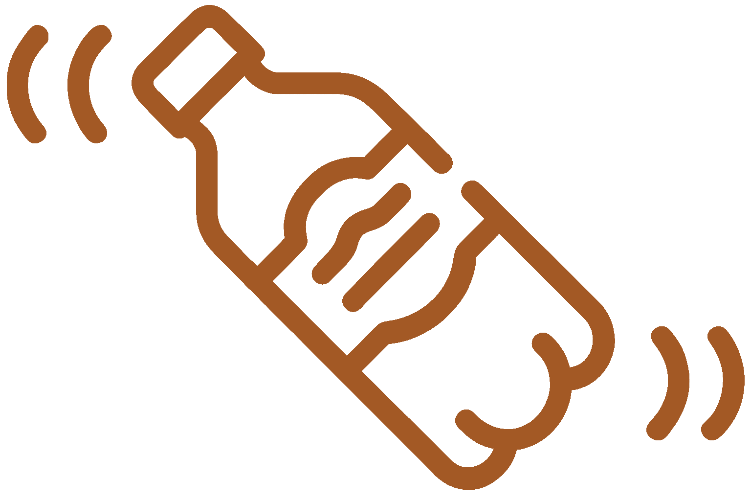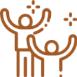 Brown party popper icon with confetti and streamers.