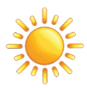 Brown sun icon with rays on a transparent background.