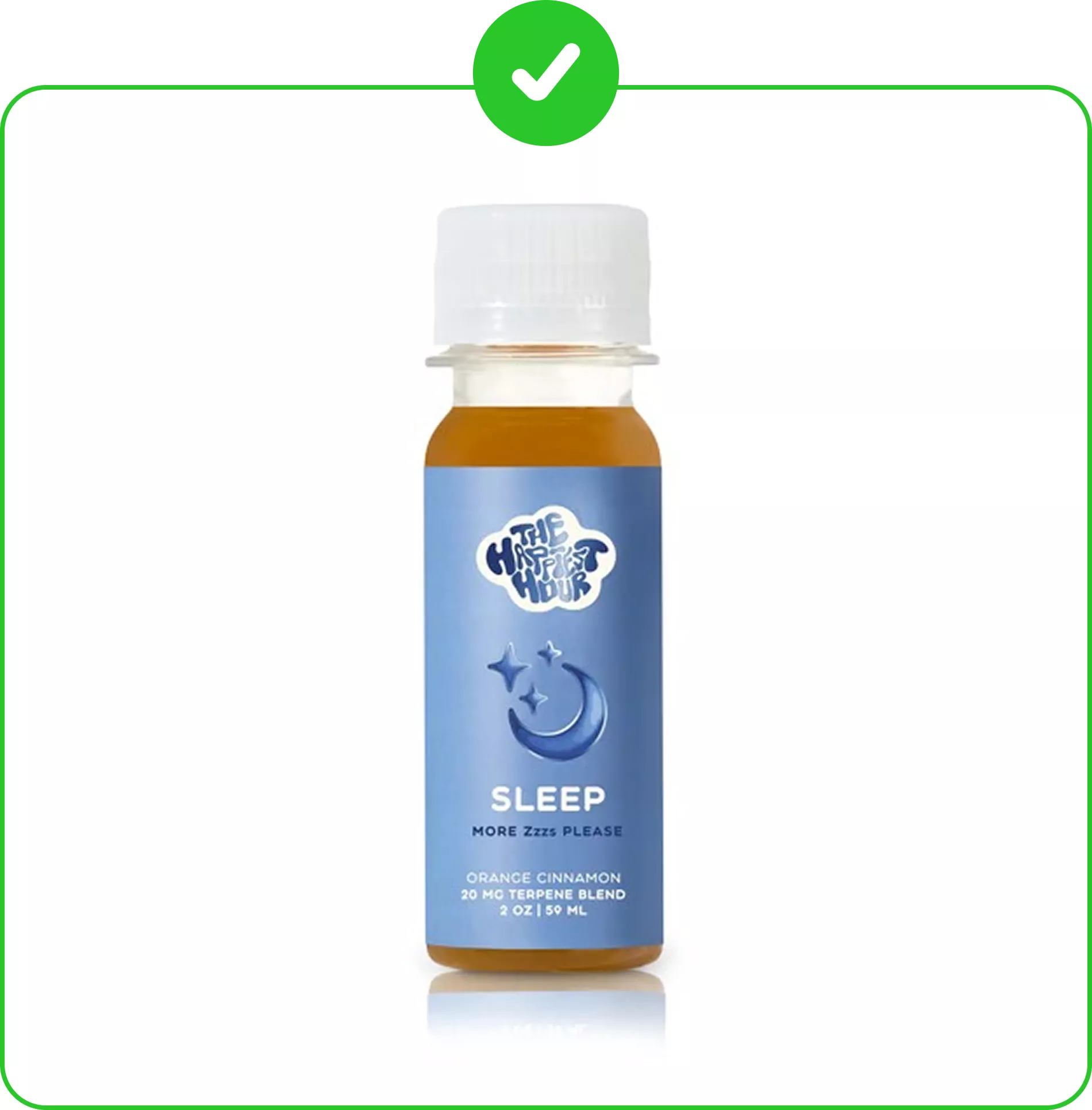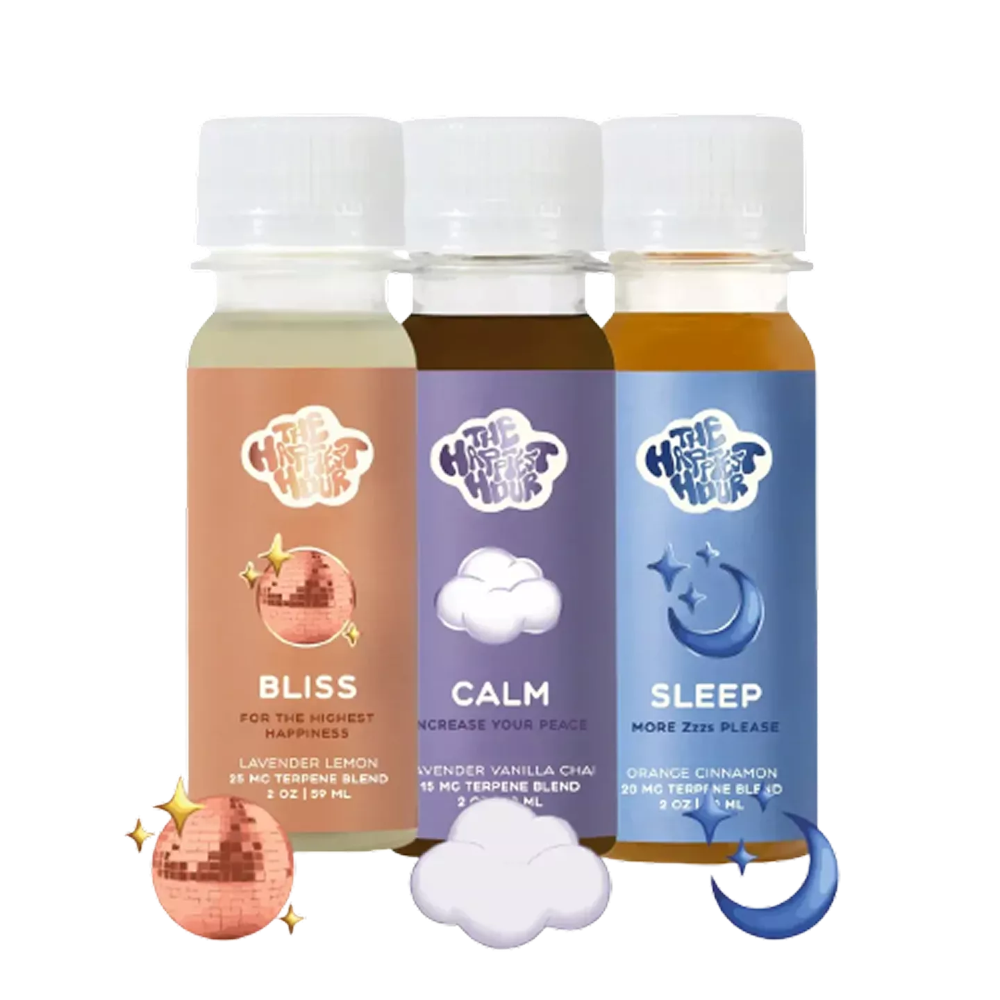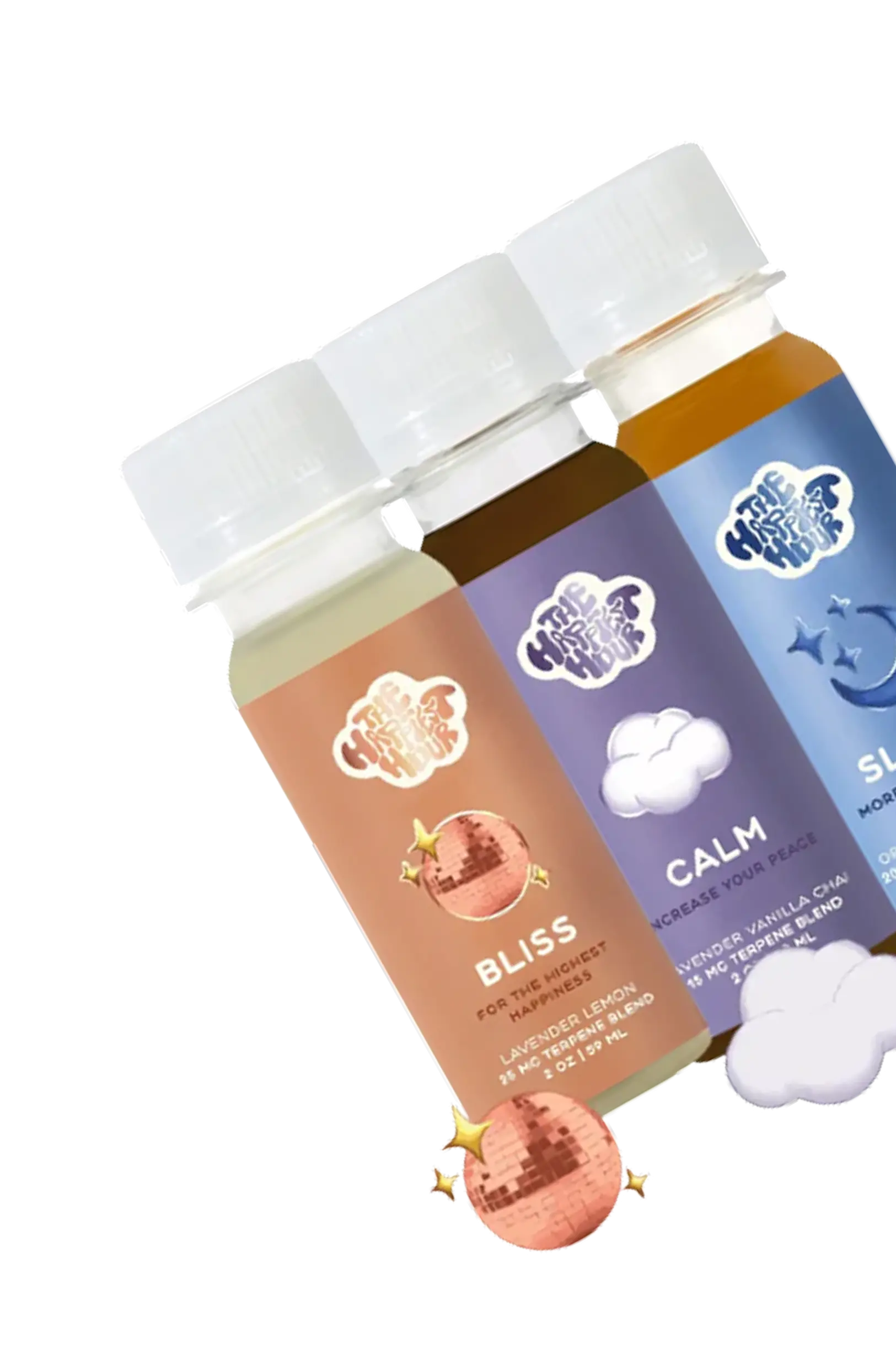 The Happiest Hour Sleep shots contain a proprietary blend of plant-based terpenes, the same compounds that make lavender calming.