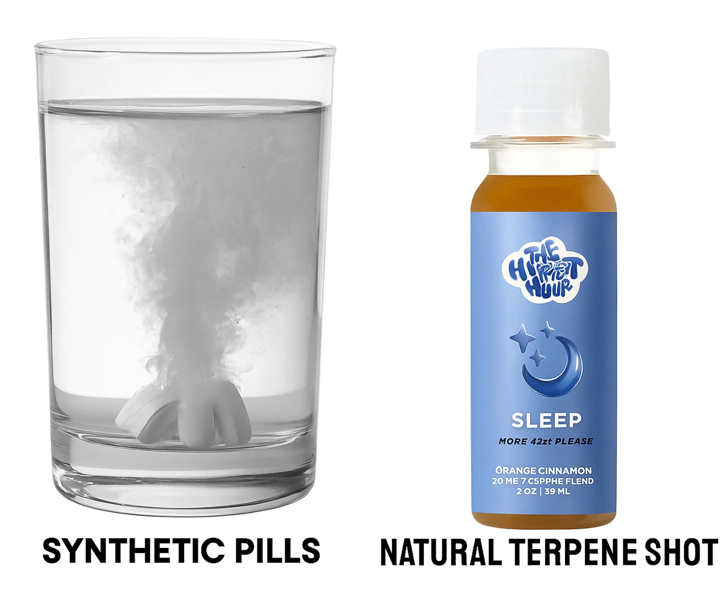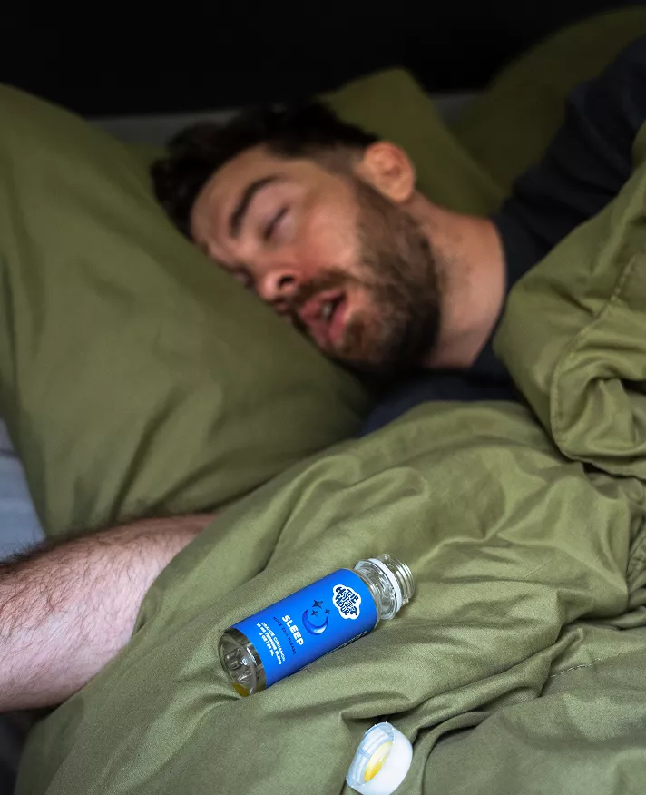 Unlike synthetic sleep aids loaded with chemicals, our Sleep shots use a proprietary blend of three clinically-studied plant terpenes that work with your body's natural sleep processes.