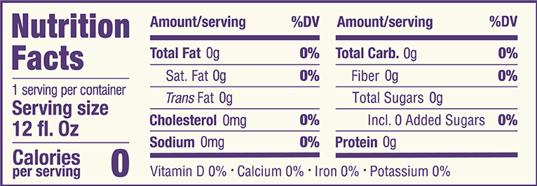 Filtered Water, Natural Flavor, Sea Salt, Caffeine, Citric Acid, Monk Fruit, and Terpene Blend (Ocimene, Limonene, and Linalool)